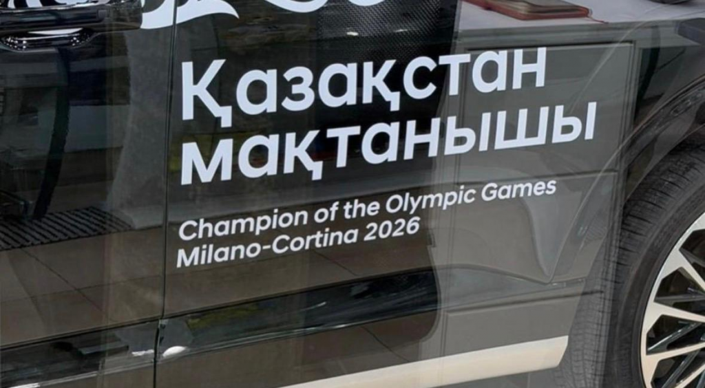 На кузове разместили надписи: “Мишабай, поздравляю с победой”. На задней двери автомобиля также есть надпись: “Гордость Казахстана” и то, что машина специально предназначена для чемпиона Олимпийских игр в Милане и Кортине 2026.